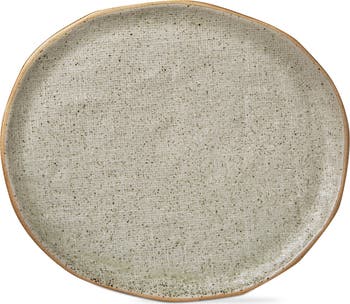 a platter that is a work of art! features gorgeous porcelain construction, speckle design, and matte reactive glaze finish. exposed clay rim. slight variations in color are to be expected—each piece is one-of-a-kind, no two pieces will be exactly alike. subtle textured surface. mix and match with a range of reactive glaze selections from tag. dishwasher safe. may get hot in microwave.