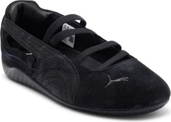 An extended topline bridged with bands of soft elastic brings a ballet-inspired silhouette to a racing sneaker that still maintains the low, streamlined profile that made it an icon. A python-inspired Formstrip floating against the open side and a PUMA Cat embroidered on the toe keep the pedal to the floor for a fan-favorite win.