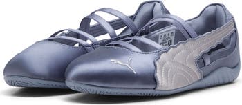An extended topline bridged with bands of soft elastic brings a ballet-inspired silhouette to a pewter-hued racing sneaker that still maintains the low, streamlined profile that made it an icon. A ripple-framed Formstrip floating against the open side and a PUMA Cat embroidered on the toe keep the pedal to the floor for a fan-favorite win.