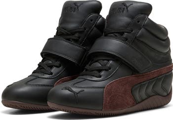 PUMA brings a dramatic lift to its fan-favorite racer sneaker with a hidden wedge that adds stature without compromising the shoe's legendary sleek, streamlined aesthetic. Wrapped in premium leather, it features a well-padded collar for comfort and a PUMA Cat keeping keeping the motor revving on the toe.