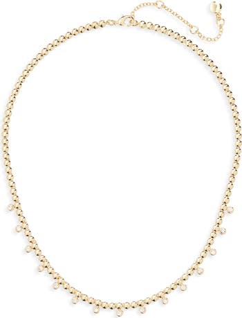 This ball-chain necklace radiates brilliant light with its round, bezel-set crystals that gently rest at your neckline.