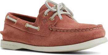 A 360° lacing system provides a custom fit on a weekend-ready boat shoe featuring raw-hide laces and Wave-Siping™ on the sole for reliable wet or dry traction.