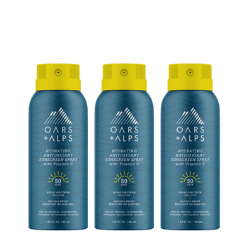 Our customer favorite SPF 50 Spray now comes in 3-pack travel size, perfect for taking on the go. This hydrating sunscreen with Vitamin C strengthens, hydrates, and brightens your skin while protecting you from harmful UV rays. Our light and non-greasy formula combines water and sweat-resistant Broad Spectrum SPF 50 with powerful antioxidants from Vitamin C and Alpine Caribou Moss™ to boost your skin's defense against the effects of the sun. To keep your skin hydrated, we add moisturizing Olive Leaf Extract and include less alcohol than a traditional SPF spray. Our Travel Size SPF 50 Spray is TSA-friendly and lightly fragranced in our Summer Splash scent, a refreshing blend of amber and coconut water.