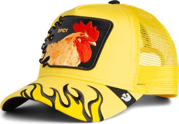 Set your style aflame with this standout trucker hat emblazoned with a fierce roost patch on the front and an intricately embroidered flame motif on the bill. An adjustable snapback strap ensures you get the greatest of all fits no matter where you kick around.