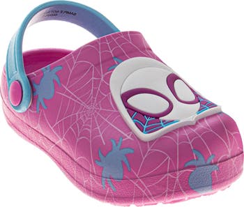 - Web-Slinging Fun with Ghost-Spider: These Marvel Spiderman girls shoes feature the iconic Ghost-Spider (Gwen Stacy) from the hit movies, series, and games; these EVA clogs bring the world of Spidey and His Amazing Friends to life with a bold character graphic and classic web designs.