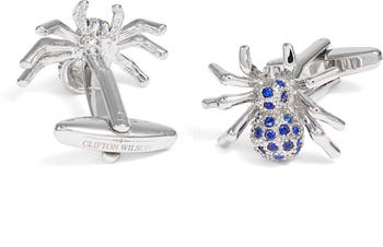 Charming color elevates eye-catching spider-inspired cuff links with indelible charm.