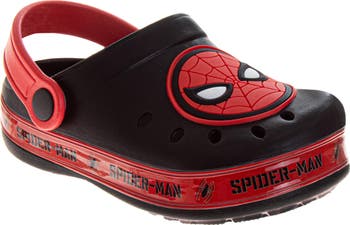 - Swing Into Action with Spidey: These Marvel Spiderman boys shoes feature the world-famous web-slinger from the blockbuster movies, series, and games; these EVA clogs bring the excitement of the Spider-Verse to his feet with bold red and blue character graphics and classic web-patterned details.