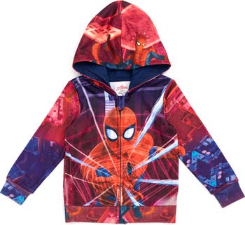 Your little web-slinger will feel ready for action in this officially licensed Spider-Man fleece hoodie! With an allover print and cosplay-inspired details, this zip-up sweatshirt lets kids suit up in superhero style. The soft hood lining, ribbed cuffs, and cozy fleece fabric keep things warm and comfy for school days, park play, or crime-fighting fun. With handy pockets and bold Spidey flair, it's a heroic favorite for cool-weather adventures!