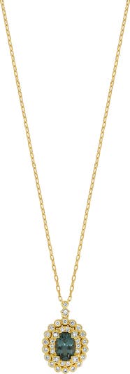 A halo of mixed-shape, staggered diamonds creates a glowing frame around the faceted grey spinel at the heart of this handcrafted pendant necklace.