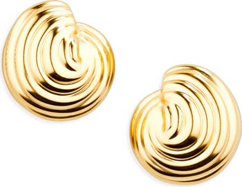 Cast your siren spell with these ocean-inspired stud earrings showcasing domed, shell-like spirals plated in warm 18-karat gold.