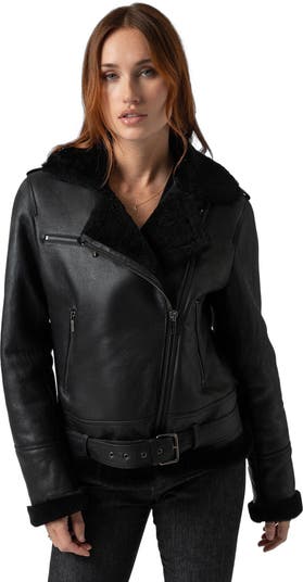 Buy the Spitfire Shearling Jacket . Made with genuine sheepskin leather from Italy and cruelty-free fur lining. Designed with gunmetal poppers and zips, belt detail on the hem and epaulet details on the shoulder. From our Women's Leather Jackets here at Saint and Sofia.