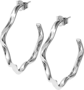 The Splash Wave Hoops are a distinctive and modern take on the classic hoop earring. Designed with a wave-like structure, these earrings evoke the beauty of flowing water, making them an eye-catching addition to any jewellery collection. Crafted from high-quality 925 Sterling Silver with a rhodium overlay, they combine elegance with a playful twist, perfect for both everyday wear and special occasions.