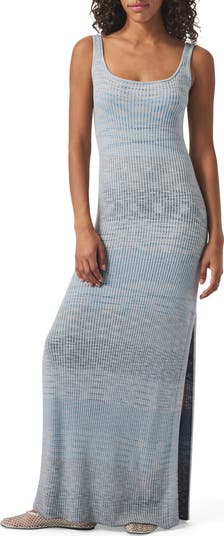 Space-dyed yarns bring a dreamy effect to a soft ribbed sweater-dress knit in a figure-skimming silhouette framed by side slits.