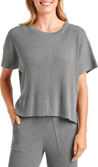 Dolman sleeves add to the relaxed feeling you'll get wearing a ribbed sweater knit from a lightweight blend kissed with cashmere.