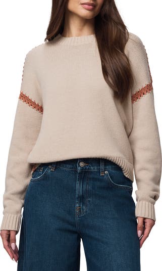 Contrast crochet stitching pieces together this cotton-blend sweater knit for an oversized fit that layers into your look just as well as it stars solo in it.