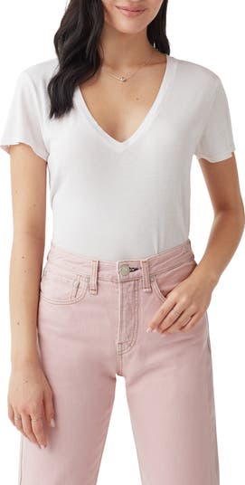 Achieve a casual-cool vibe in this soft cotton-modal T-shirt designed with a dipped neckline and abbreviated sleeves.