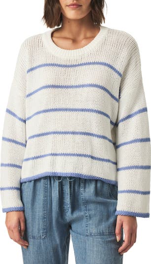Loosely knit for a breezy feel, this cotton-blend sweater features beachy stripes, bell sleeves and a boxy, slightly cropped silhouette.