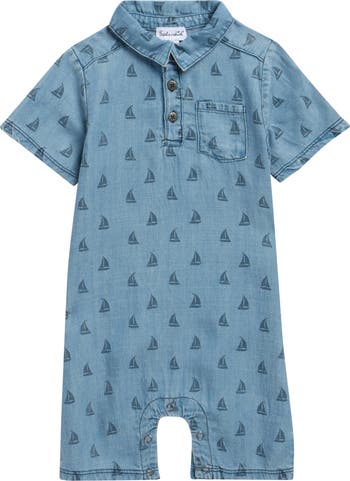 Baby will set sail for a day of adventure in this nautical romper made from soft chambray.