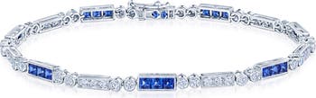 Stations of vibrant sapphires enhance the rich sparkle of this diamond bracelet that's handcrafted from 18-karat white gold.