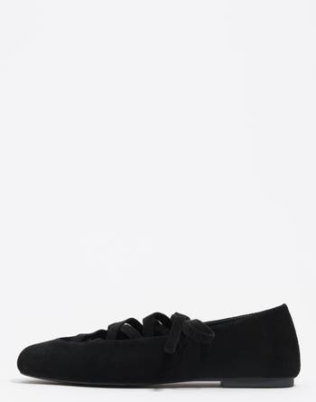 Suede outdoor ballerina flats with decorative straps and logo sole