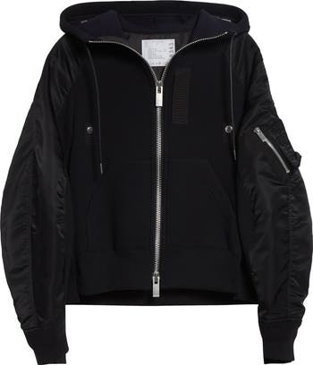 A master of contrarian textures, Chitose Abe showcases her hybridized approach in this lightly insulated hoodie that combines spongy cotton-rich fleece and sporty nylon twill into one bold statement.