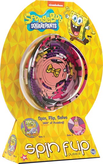 SPIN FLIP PUZZLE: 12 RINGS - SPONGEBOB & PATRICK - Join SpongeBob and his friends on a puzzle-solving adventure with the Spin Flip SpongeBob SquarePants Puzzle 2! Spin it, flip it, solve it. This innovative puzzle invites you to spin, flip, and solve as you immerse yourself in a dazzling 360-degree experience filled with fun. Designed for puzzle lovers, this engaging challenge is perfect for those who appreciate brain teasers infused with a touch of glamour. This Spin Flip Puzzle features 12 concentric rings that you can twist, slide, and manipulate to reveal stunning images of Spongebob. As you play, you'll discover a beautiful collage of scenes, encouraging you to think critically and creatively as you work to solve the puzzle. What makes this puzzle even more exciting is its double-sided design, offering not one but two complementary images for double the fun! Each side presents a unique image, ensuring that you’ll never run out of stylish challenges to tackle. Designed with little hands in mind, the compact size of the puzzle (4.25” W x 4.25” H x 0.25” D) makes it easy for kids to manipulate and enjoy. This portability also makes it a great travel companion, perfect for on-the-go fun or quick entertainment at home. When you’re finished, the puzzle can be easily stored flat, taking up minimal space while remaining ready for your next fashion adventure. With its official Spongebob license, this authentic puzzle is a fantastic gift for fans of all ages. Whether for a birthday, holiday, or just because, the Spin Flip Puzzle promises hours of entertainment and excitement. Suitable for children ages 8 and up, this puzzle is not just a toy—it's a stylish experience that encourages imaginative play and critical thinking.