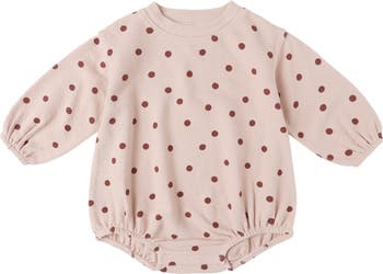 A classic polka dot print adds adorable charm to a soft romper cut from a stretch-enhanced cotton knit to keep your little one comfy all day.