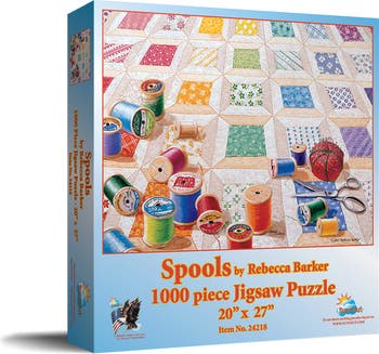Spools 1000 pc Jigsaw Puzzle by SunsOut - 1000 Piece Puzzle - Completed Size: 20x27 inches - Puzzle Artist: Rebecca Barker - UPC: 796780242180 - Eco-Friendly - Soy-Based Inks - Recycled Board - Made in the USA - Interlocking Pieces & Durable Construction