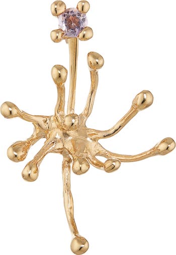 One earring wearable two ways—as the spora drop or as an amethyst stud—captures attention in any configuration with a free-form shape in gleaming 14-karat-gold plating.