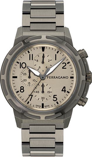 Inspired by traditional pilot watches, the Ferragamo Sport Chronograph applies on-trend styling to the clean, functional, easily readable classic timepiece, making it ever ready for adventures ranging from rugged to refined.