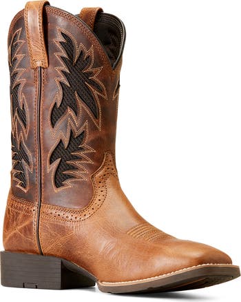 Flame-shaped mesh insets climb the shaft of a broken-in leather boot that pairs a squared, roomy toe with a lightweight feel that breathes easy in the heat. Built-in cushioning and a flexible, durable sole put all-day comfort under every step.