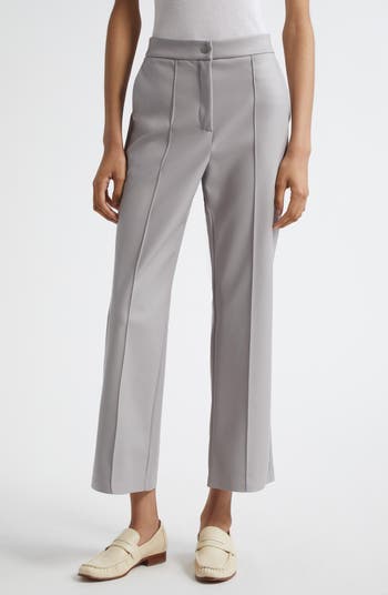 Smooth faux leather updates the look of these ankle-grazing pants complete with crisp front pleats.