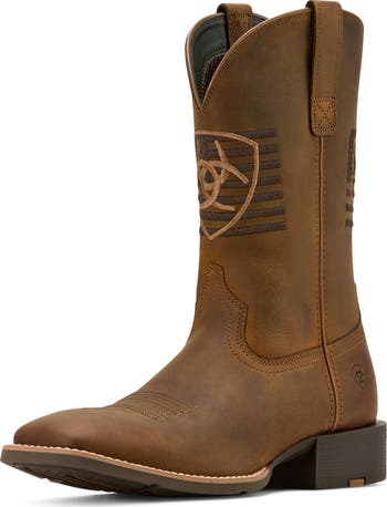 Show your love of country in this durable performance boot featuring a classic Western silhouette updated with a wide square toe and detailed with patriotic embroidery.