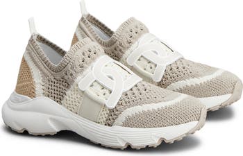 Dimensional embroidery highlights the leather links strapping this sporty sneaker crafted with a comfortable sock-like fit from a soft technical knit. A grippy rubber sole with signature pebbled tread provides added traction.