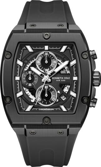 Sport Tonneau Chronograph Silicone Strap Watch, 44mm x 28mm