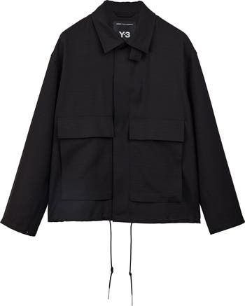 A hidden-button placket add to the streamlined look of this relaxed-fit coach's jacket that has a drawstring hem for easy adjustments.