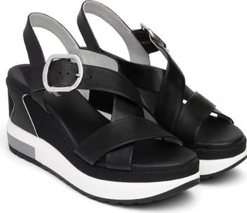 A chunky layered platform wedge inspired by athletic shoes brings eye-catching lift to this Italian-made sandal topped with smooth leather straps.