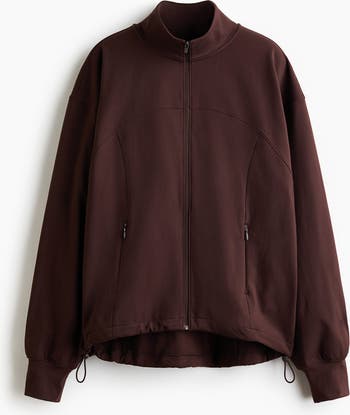 Sports track jacket in functional fabric made with SoftMove™, which provides the ultimate in softness, and DryMove™, which helps pull moisture away from your skin. Loose fit with a stand-up collar, zip down the front and zipped side pockets. Voluminous, cuffed sleeves and an elasticated drawstring with cord stoppers at the hem for an adjustable fit.