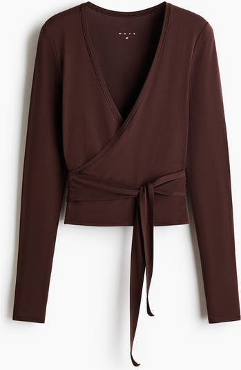 Sports top in soft modal jersey with a slim fit, a deep V-shaped neckline and a wrapover front with ties that wrap and tie around the waist.