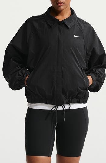 A smooth exterior and brushed-fleece interior score soft, cozy warmth in a coach's jacket made with a point collar and drawstring waist for a stylish blouson profile that keeps cold winds out.