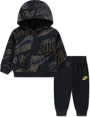 Cotton-blend fleece brings softness and warmth to a logo-covered hoodie that pairs with coordinating joggers to keep your little one enjoying the cold in cozy comfort. They work great as a set and easily pair with your child's other wintry favorites to provide more snuggly options when the temperatures fall.