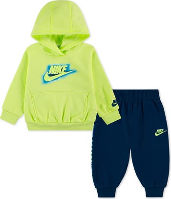 Baby can lounge in ultimate comfort without compromising on style in this cotton-blend set featuring a neon-hued graphic hoodie and a pair of coordinating sweatpants.