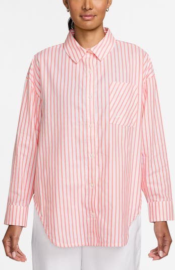 Crisp cotton poplin in classic pencil stripes makes this roomy button-up a shirt a wear-forever favorite whether tucked in or flowing freely.