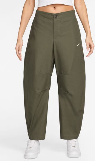 Nike's signature sporty vibes get a street-style update in these barrel-leg pants crafted from drapey, lightweight cotton canvas with darts at the knees that help accentuate the volume.
