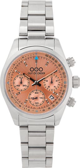 A robust stainless steel bracelet with a matte brushed texture emphasizes the sleek and sporty vibe of this quartz-powered chronograph masterfully made in Italy. SuperLuminova® inserts highlight the hands and hour markers for superior visibility in low-light conditions.