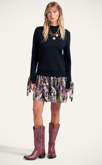 The Sporty Dress puts a cute style spin on the humble sweatshirt so you don’t have to. Done in our soft 100% cotton felpa, the sweatshirt part does the casual-comfy-cosy thing, while the silky twill flippy skirt adds a flirty touch. As for the details, we love that mock neckline and ribbons on the sleeves you can tie or let loose. Enchanting in this intricate Fun-Gi print, it’s as cute for city cocktails as it is easy for a casual Sunday. You know we love a little high-low mix.