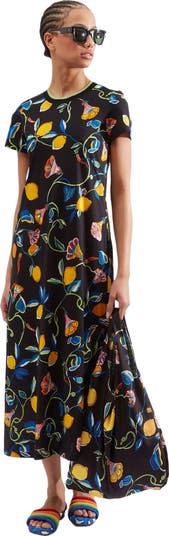 You know and love our Swing Dress. Now meet its super relaxed sister, the Sporty Swing. This babe has all the same good genes (T-shirt silhouette, long hemline) but arrives in comfy cotton jersey so you can crack it out on the everyday. Stretchy across the shoulders with a super simple loose fit, it’s the slow Sunday morning/park picnic/easy office dress your wardrobe has been crying out for. Our maximalist LDJ twist? Our outta-this-world new season prints and cool, contrast rib collar.