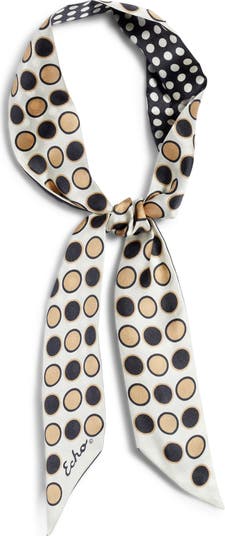 Mixed polka dots bring a '70s aesthetic to a slender silk scarf that will put the finishing touch on your standout looks.