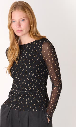 Sheer top with sculpting ruched waist and translucent sleeves, cut to flatter the silhouette for confident evenings and memorable nights.