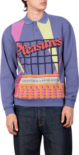 Neon spotlights keep every eye on you in a waffle-knit polo made of soft, breathable cotton with music-themed artwork and an '80s-throwback aesthetic. Wear it whether you're dressing for paparazzi or dancing in the dark to your own favorite beats.